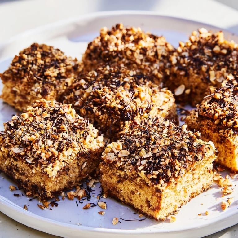 Save to Pinterest These hazelnut and honey cake squares provide a simple yet delightful treat that everyone will enjoy.