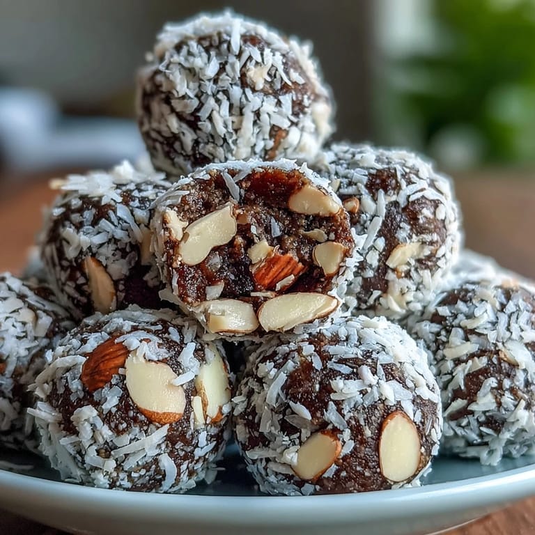 - Pour shredded coconut onto a small plate and roll each ball gently until coated, pressing just enough so it adheres without crushing the ball.