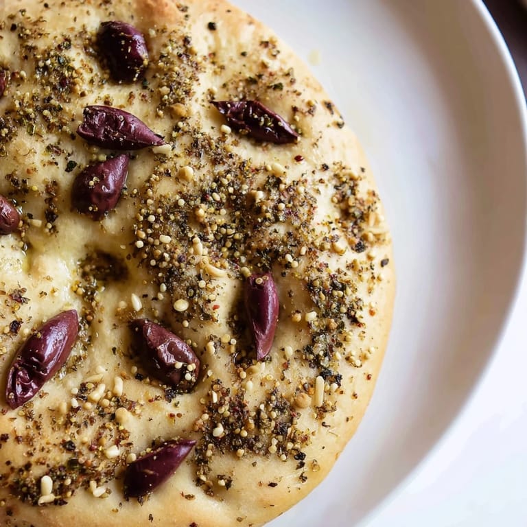 Save to Pinterest There's something about the smell of zaatar that takes me back to a tiny spice market in Istanbul where I first tasted focaccia with an unexpected twist. The vendor handed me a warm piece, still dimpled and glistening with olive oil, studded with briny olives that burst on my tongue. I came home determined to recreate that moment, and after a few attempts, I realized the magic wasn't just in the ingredients but in how they sang together on warm, pillowy bread. This focaccia became my answer to the question: what happens when Italian tradition meets Middle Eastern soul? Now it's the first thing friends ask me to make.